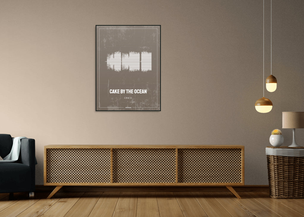 Immerse yourself in the vibrant rhythm of DNCE's "Cake By The Ocean" with this unique soundwave poster. This track, known for its catchy tunes and the amusing miscommunication that inspired its title, brings an energetic beach party vibe to your space.