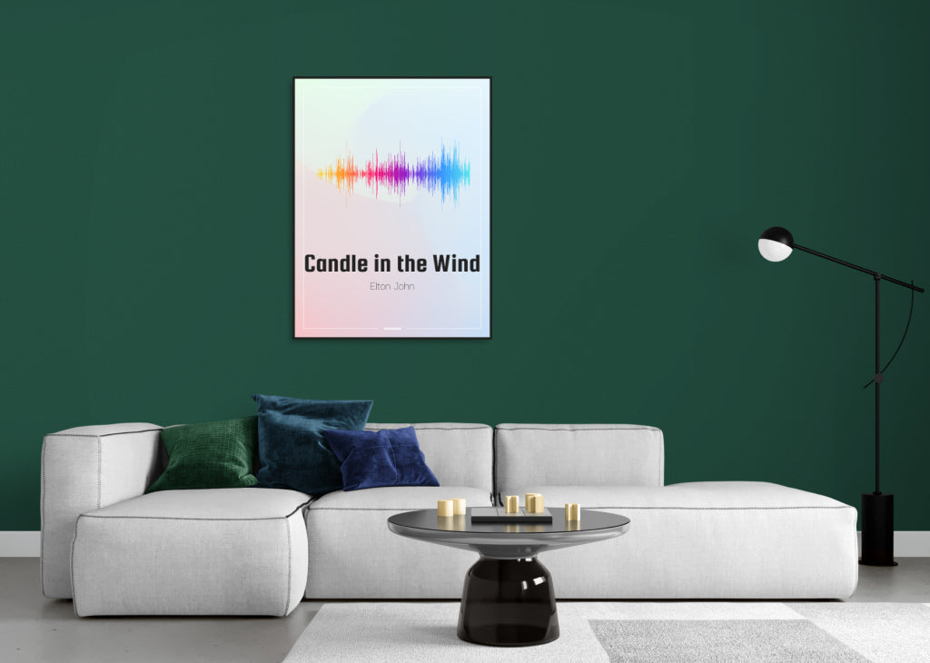 Celebrating the harmonious melodies of Elton John's "Candle in the Wind", this soundwave poster is a visual treat for music lovers. Experience the song that pays tribute to the legendary Marilyn Monroe, beautifully captured in this unique piece of art, perfect for fans of this timeless classic.