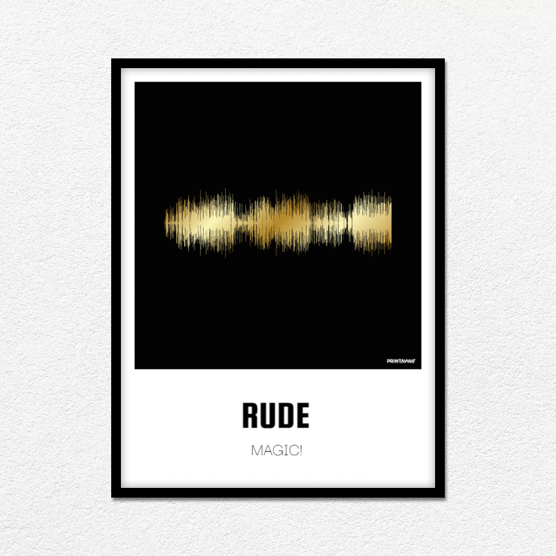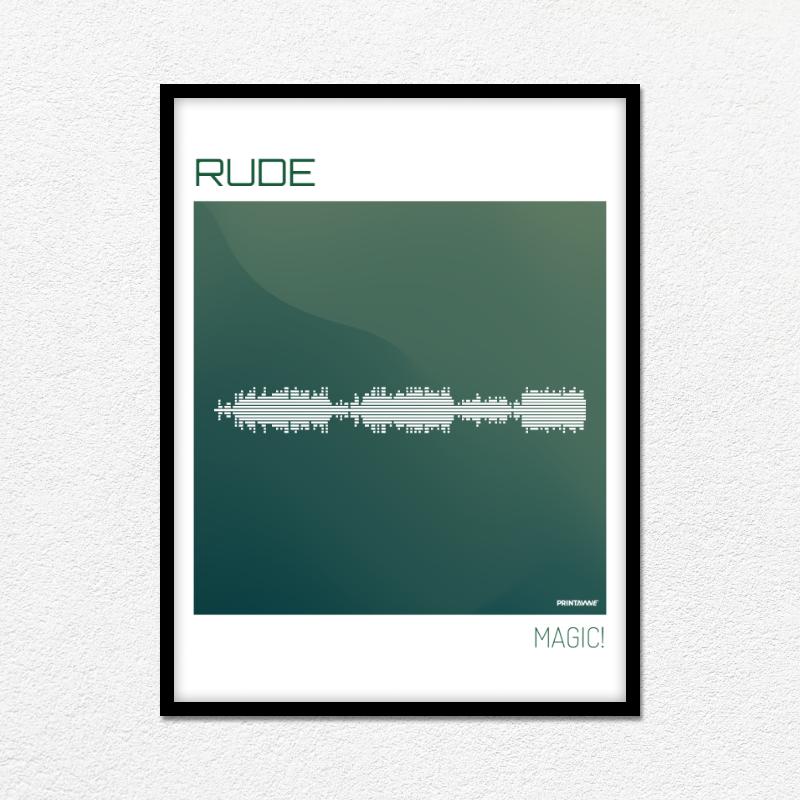 With its distinctive reggae-pop beat, "Rude" by MAGIC! takes a fun twist on a timeless tale of love defying the odds. This soundwave poster captures the playful rhythm and spirit of the song, perfect for those who enjoy a touch of tropical vibes in their decor.