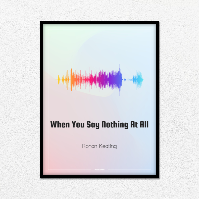 Experience the quiet intensity of Ronan Keating's "When You Say Nothing At All" in a whole new way with this visually stunning soundwave poster. This track, known for its heartfelt lyrics and Keating's smooth vocals, is beautifully represented, capturing its sweet serenity and the power of silent communication.