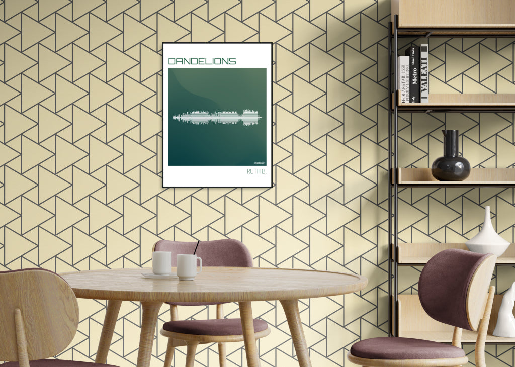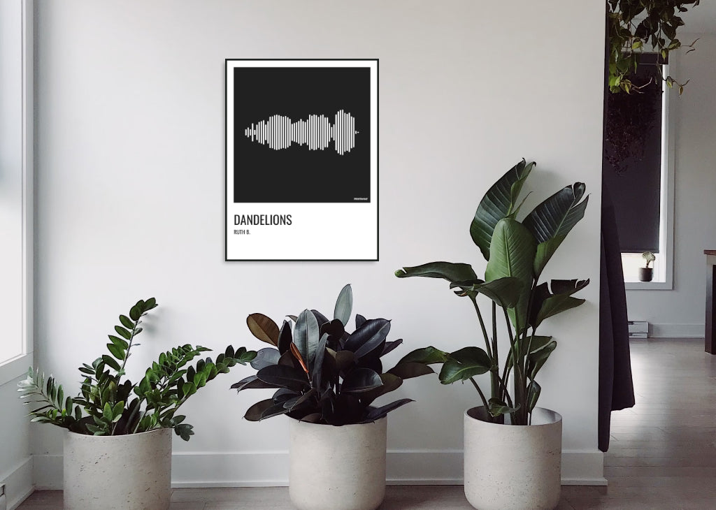 With the delicate essence of Ruth B.'s soulful ballad, "Dandelions," this soundwave poster visually represents the emotional depth of the track. Known for its heartwarming piano melody and the singer's enchanting voice, this poster is a charming tribute to a song that beautifully equates love to a field of dandelions.