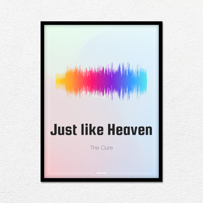 Drenched in a vibrant soundscape akin to falling in love, "Just Like Heaven" by The Cure has a fond place in the hearts of fans worldwide. This soundwave poster embodies the track's infectious rhythm and Robert Smith's hauntingly beautiful lyrics, offering a unique piece of art for every Cure enthusiast.